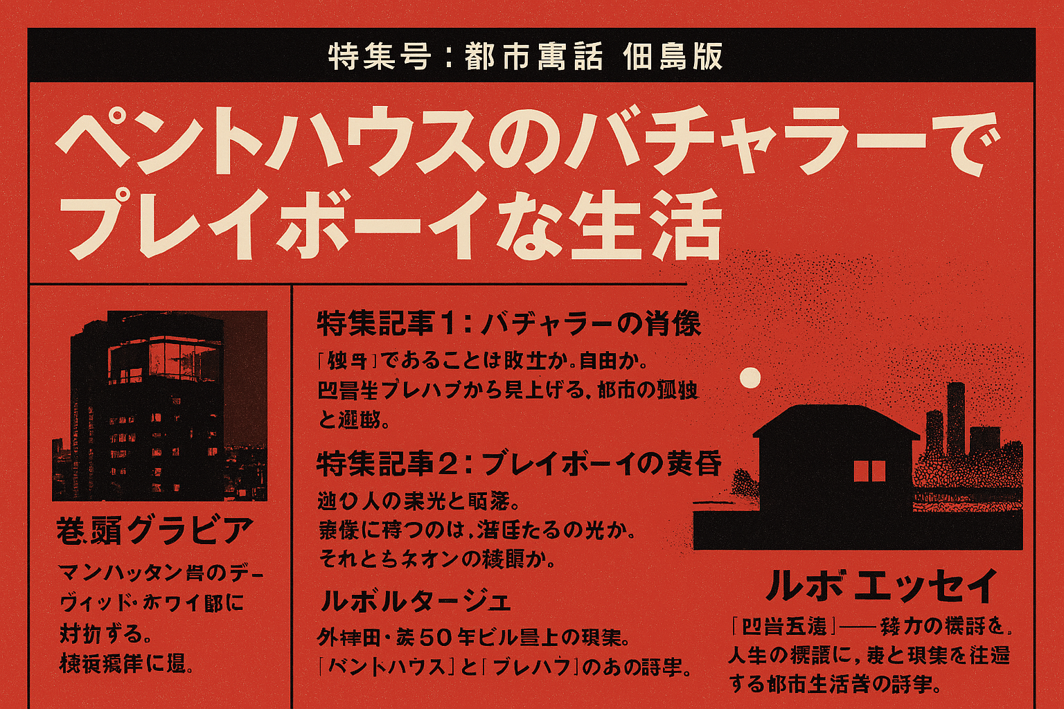 表紙コピー:「ペントハウスのバチャラーでプレイボーイな生活——昭和アメリカ男性誌が夢見たライフスタイルを、東京湾岸に移植する試み——」